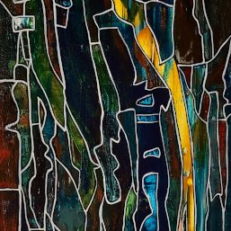A series of abstract paintings with a mixed palette and textures painted using fingers, brushes and found objects. The style is reminiscent of webs, yarns, lattices and mottled spaces, and signifies the artist’s struggle to grasp at what lies beyond.